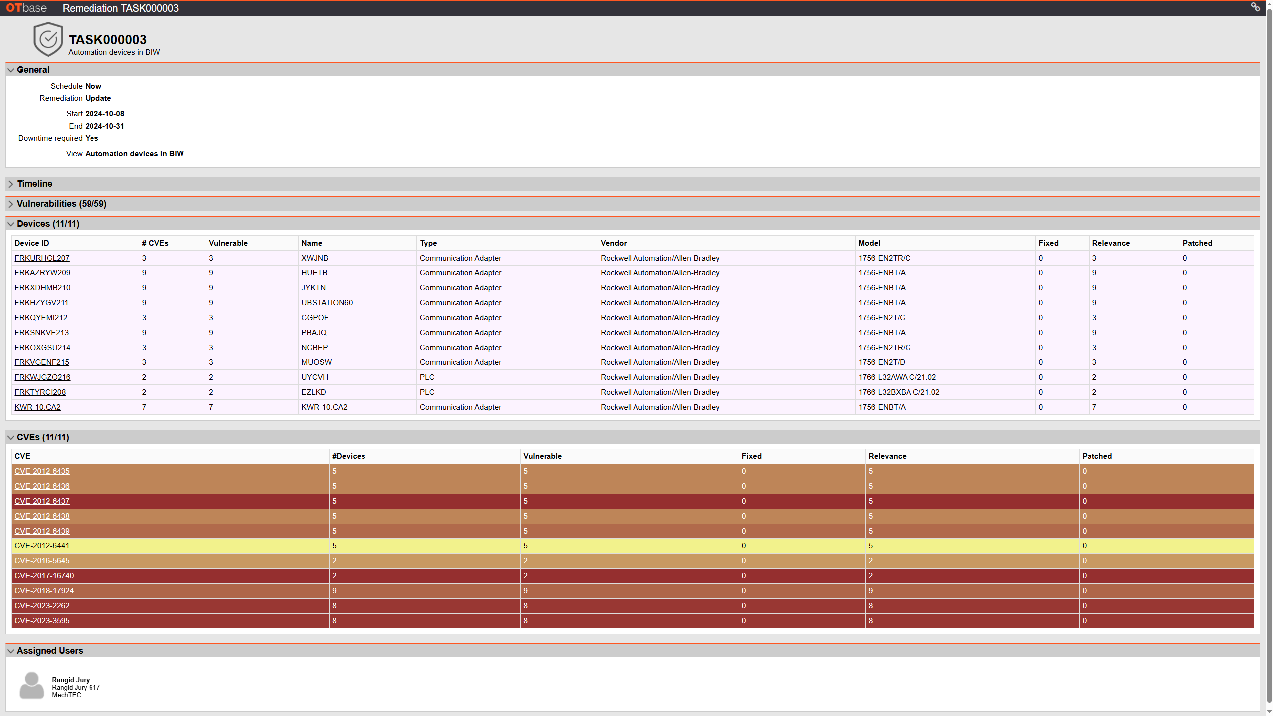 OTbase automatically shows you which CVEs affect your installed base, updated every 24 hours. It also sends email notifications if desired. No CVE “probabilities”, no “CVE-EOL”, but all the details.